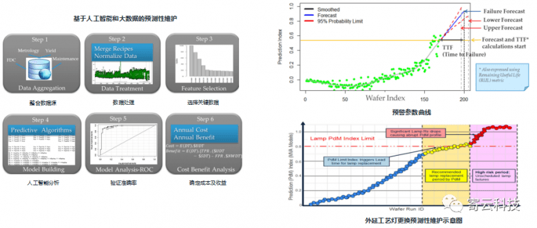 基于FDC输出数据,良率数据以及量测数据,利用MVA技术开发预测模型,根据预测故障发生时间,获得估计的故障发生时间(MTTF)范围和预测的可信度。提前做出应对计划,减少计划外downtime以及wafer 损伤风险。