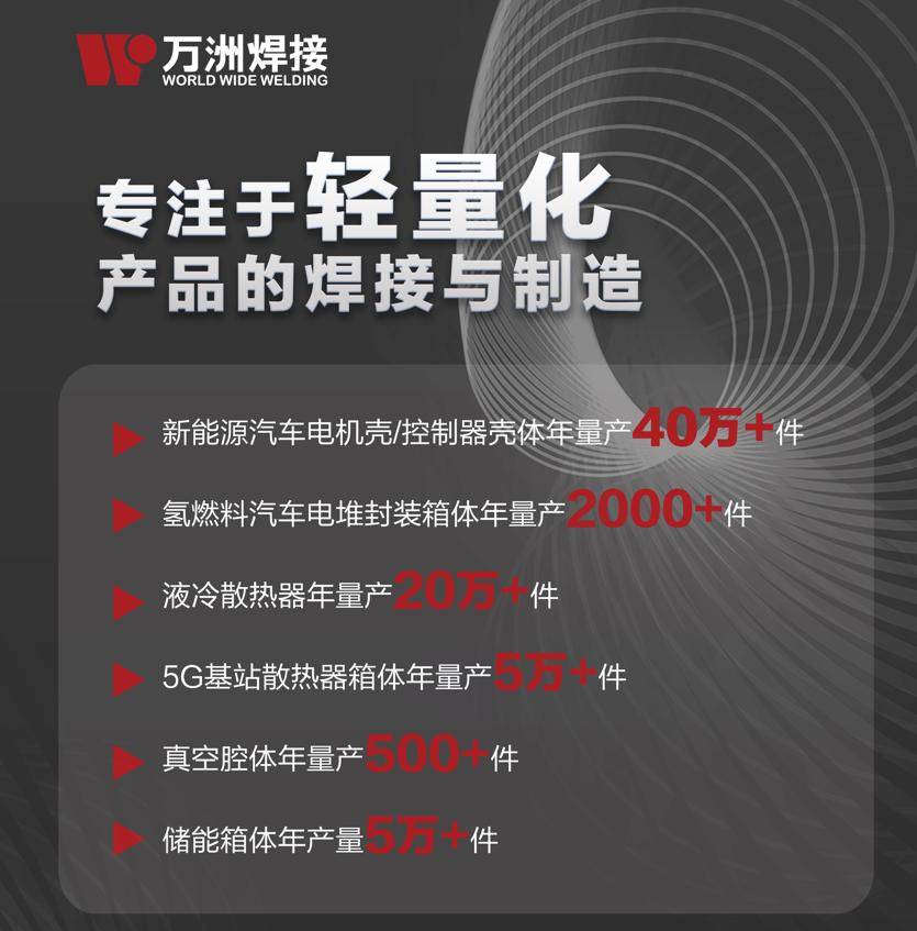 智能制造和轻量化是工业发展的必然趋势,万洲焊接以搅拌摩擦焊为核心技术,致力于成为全球领先的特种焊接研究与产业平台,通过智能装备、先进制造、焊接耗材和技术咨询一站式搅拌摩擦焊解决方案为轻量化产业赋能。