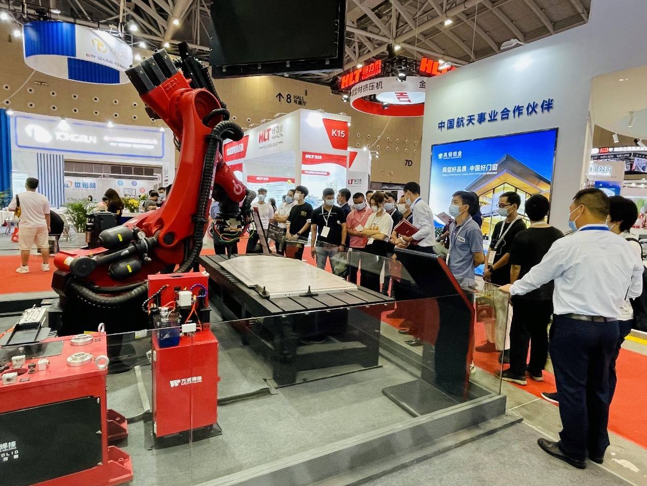 本次华南铝工业展重点展示了搅拌摩擦焊机器人设备两大全新功能:智能工具交换系统和自动修磨器。