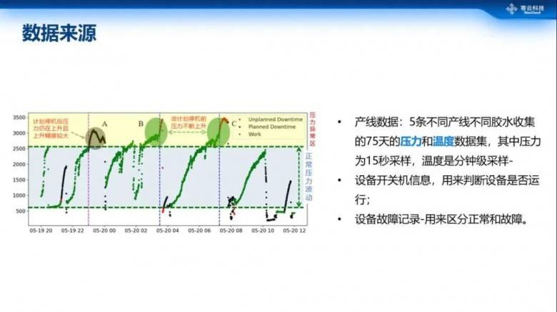 时博士结合寄云实际案例,讲述了寄云对离散制造业高端装备的连续运行提供的运维方案,通过一系列的基于设备实时状态的采集和分析,对设备的当前状态进行监控,提供智能的故障诊断和健康评估,提供完整的维护保养和基于寿命预测的备件管理,从而降低非计划停机概率、延长设备寿命、降低维护成本,提升了企业的效益。在两次测试集中,预警时间比真正故障发生时间分别提前了25h和30h。